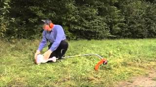 По конструкции мотокосы STIHL FS 45 видно, что данная модель предназначена не для работников ЖКХ, обрабатывающих большие площади буйных зарослей, а для владельцев небольших участков (до 10 соток) с хорошими газонами. Привод от 750-ваттного двигателя к режущей системе осуществляется через гибкий вал. Поэтому инструмент не «потянет» нож, необходимый для обрезания кустарника или борщевика. На эту мотокосу можно устанавливать только триммерные головки, предназначенные для кошения свежей травы (производитель рекомендует те шпули, которые рассчитаны на леску диаметром 2 мм).