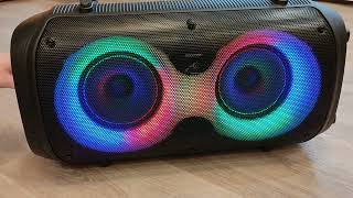 Мощность аудиосистемы составляет 100 Вт, поэтому громкости будет достаточно. Однако при желании можно соединить по беспроводному каналу две колонки и создать стереопару на основе TWS-технологий. Кроме того, колонка имеет все необходимое для веселых вечеринок: функцию караоке с легким эхом, два входа для подключения проводных микрофонов и многоцветную интерактивную подсветку с несколькими режимами эффектов, которая хорошо видна и в темноте, и при дневном освещении.