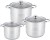 ![]() | Товар устарел Тип: набор посуды; Основных предметов (шт): 3; Мин. размер (см): 22; Макс. размер (см): 26; Мин. объем (л): 7.2; Макс. объем (л): 11.1; Материал: сталь; Материал крышки: стекло; Ручки: металлические; Антипригарное покрытие: отсутствует; совместимость с индукцией; мытье в посудомойке; отверстие для пара |
