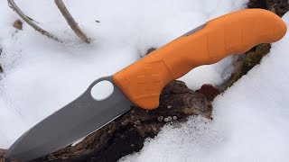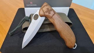 Складной нож производства Victorinox относится к представителям продвинутой ценовой категории. Модель позиционируется в качестве решения для охотников с различным уровнем опыта и мастерства, но также может применяться и для повседневной носки (EDC). Клинок примечателен гладкой режущей кромкой и профилем drop-point, который способствует универсальности при выполнении различных операций.