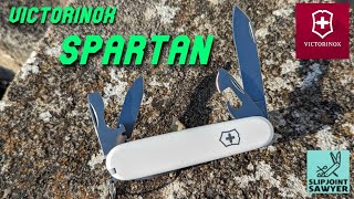 В линейке швейцарских армейских ножей Victorinox модель Spartan относится к начальным решениям. Она характеризуется весьма компактными размерами (длина в сложенном виде 91 мм) и легким весом (59 грамм), соответственно легко поместится в большинство карманов одежды, не займет много места в городском (а тем более походном) рюкзаке и т.д. Основной клинок швейцарского ножа Victorinox Spartan предусматривает универсальный и часто встречающийся профиль drop-point, в пользу которого среди прочего говорит высокая надежность.