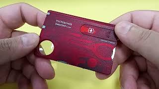 Небольшой мультитул, выполненный в виде малогабаритного дорожного набора. Имеет формат визитной карты, отличается максимально компактными размерами, ультранизким весом (27 г) и премиальным внешним видом полупрозрачного красного пластикового корпуса. Представляет собой набор из семи предметов, способных выполнять различные функции. Будет особенно полезен в дорожных условиях, как мужчинам, так и женщинам.