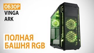 Большой и вместительный корпус с ярким дизайном, позиционируемый производителем в нижний ценовой сегмент. Форм-фактор системного блока Full Tower, шасси позволяет использовать материнскую плату типового размера E-ATX. Внутри корпуса Vinga Ark пользователь сможет разместить графический адаптер длиной до 465 мм и процессорный кулер высотой до 179 мм. Системный блок комплектуется 5-тью штатными вентиляторами диаметром 120 мм, все кулеры оснащены RGB-подсветкой, а режимами работы вентиляторов можно управлять с панели управления, где установлен контроллер реобас.