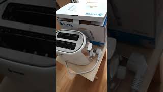 Тостер компании Vitek стоит недорого, но при этом довольно функциональный. Он имеет два отсека для двух кусочков хлеба и 6 степеней обжаривания на любой вкус. Мощность небольшая — 750 Вт, для приготовления тостов на максимальном режиме уходит около 4 минут. Правда, поначалу прибор недостаточно разогревается, поэтому первую партию, возможно, придется дожаривать во второй раз, а это еще несколько минут. То же самое касается черного и серого, то есть более твердого хлеба. Но, в целом, тосты получаются равномерно обжаренными, не пересушенными, с аппетитной золотистой корочкой.