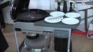 Один из продвинутейших угольных грилей Weber с практичной системой газового розжига брикетированного топлива. Угли предполагается разжигать в защищённом от непогоды резервуаре CharBin. Ещё неиспользованные брекеты можно хранить в ящике Char-Basket. Модель представлена в виде столика на колёсном шасси с интегрированным котлом для приготовления пищи на гриле. В зоне готовки размещается большая решётка диаметром 570 мм со съёмным центральным модулем — на его место устанавливаются любые аксессуары для готовки из линейки Gourmet BBQ System (мини-сковорода, стейковая решётка, казан-вок, камень для пиццы).Внизу котла предусматривается удобная система очистки от золы и пепла One-Touch. Гриль Weber Perfomer Deluxe GBS 15501004 оборудован крючками для подвешивания лопатки, щипцов и прочих вспомогательных принадлежностей, оснащается съёмным электронным таймером и крупной решёткой в нижнем сегменте корпуса, где можно хранить угли, готовые и подготовленные продукты, различные сопутствующие аксессуары.