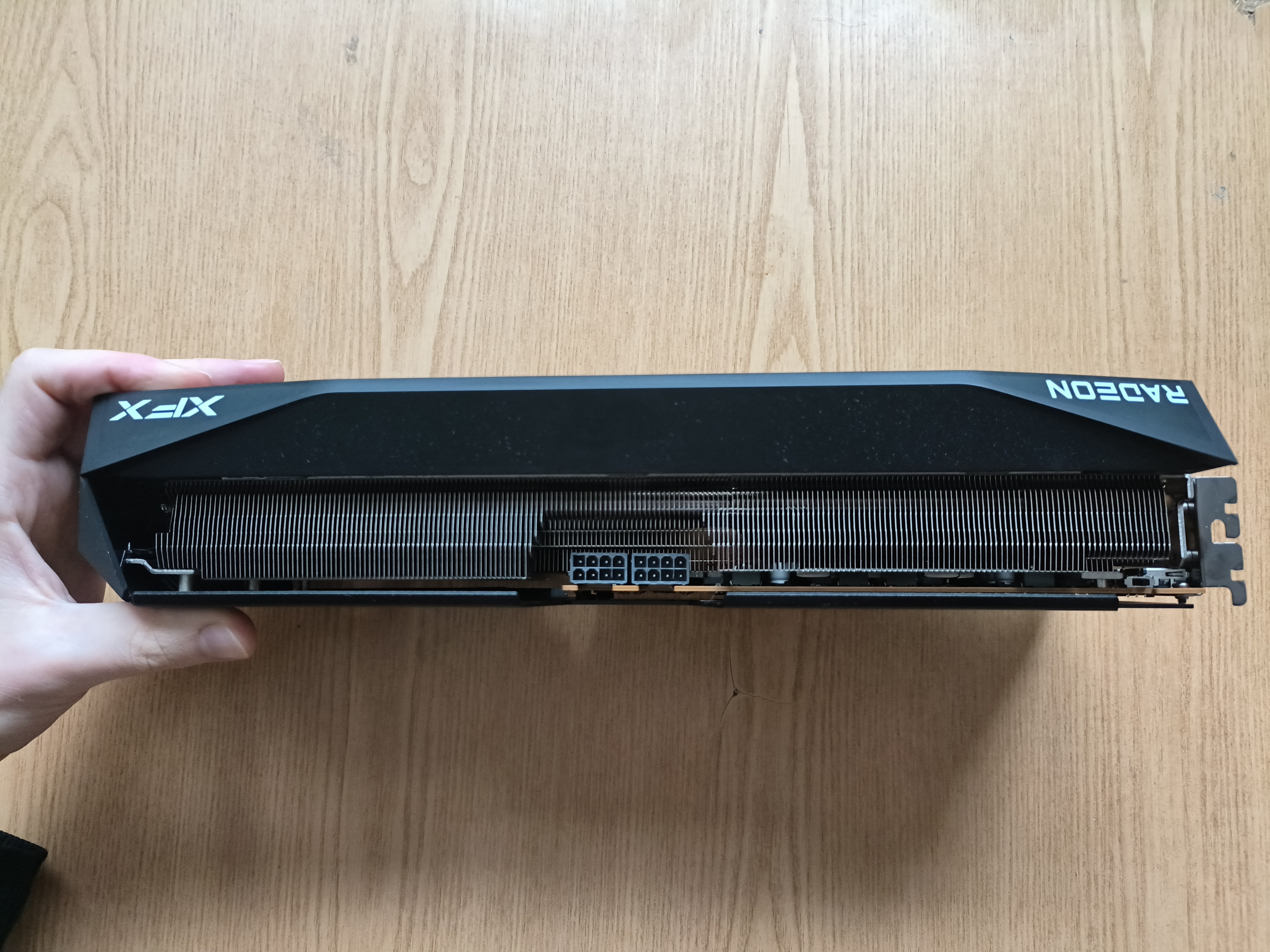 - Стоковые настройки. GPU 60, хотспот 78-80, память 72 (хотя бывало до 80), обороты 1600. Карта, откровенно, шумновата. - Снижение потребления на 15% через Adrenalin. GPU 58, хотспот 75, память 70 (всё те же пиковые до 80), обороты 1200. Карта переходит в разряд не особо шумных, теряя около 2-3% производительности. - Снижение потребления на 30%. GPU 55, хотспот 65, память около 70, обороты 850. Переходит в категорию “просто фоновый шум”, но теряется еще около 5-6% производительности. Плюс в целом все говорят о том, что вентиляторы на картах XFX слишком агрессивно настроены и имеет смысл чуть уменьшить, но я не проверял. Так что по итогу, карта очень даже холодная, скинуть 10-15% потребления и чуточку снизить напряжение (моя стабильна при -50 милливольт), и получите холодную, +- тихую карту, даже несколько производительнее чем из коробки. Берите, если по цене она будет минимально дороже младших версий. По цене, близкой к OC, вероятно, логичнее выбрать OC. Из минусов, лично мне это не важно с моим закрытым корпусом, но я бы отметил не особо привлекательный угловатый внешний вид + подсветка только белая и светит она куда-то вниз под углом. Если вам это важно, имейте ввиду (у других версий Mercury подсветка RGB, у этой только белая).