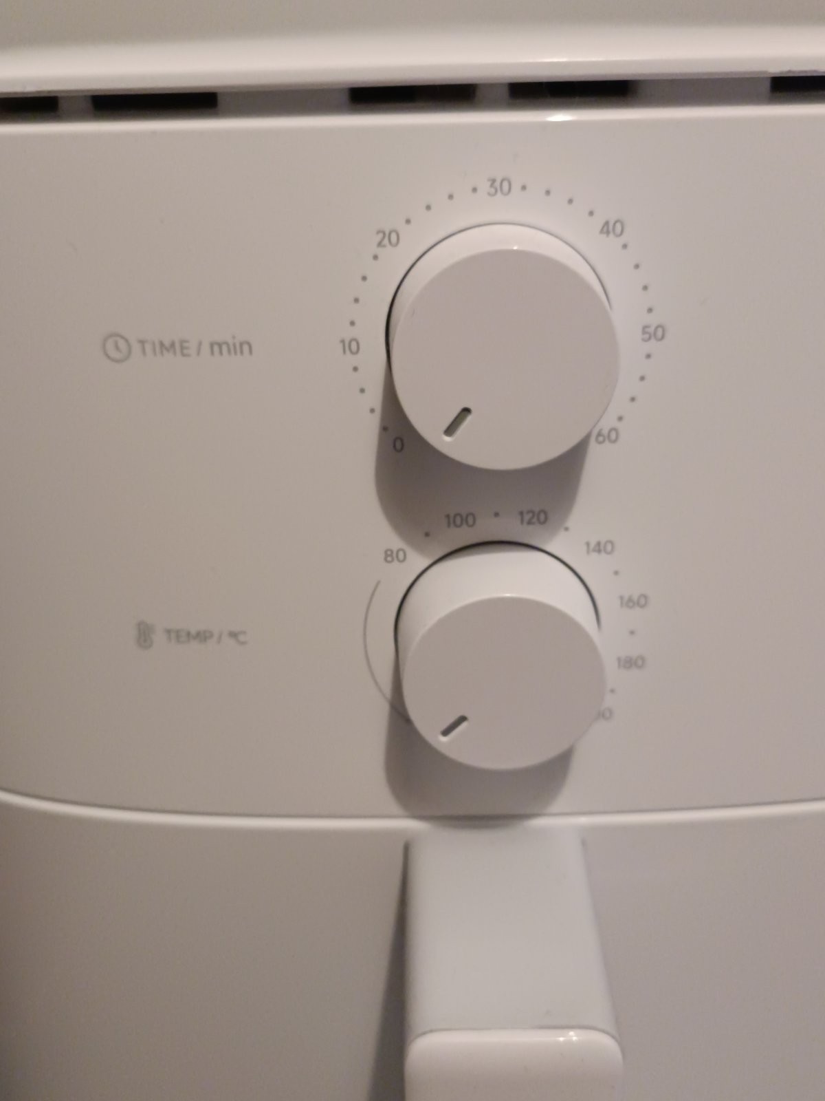 Учитывая низкую цену, автоматических программ у модели нет — только ручные настройки температуры (от 80 °С до 200 °С) и таймер для установки времени готовки (до 60 минут). При этом в верхней части корпуса есть подробные рекомендации с указанием времени и температуры для тех или иных продуктов. Регулировка температуры и времени осуществляются с помощью двух обычных поворотных ручек.