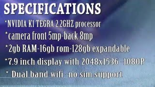 Диагональ составляет 7.9 дюйма, а разрешение — 2048х1536 — то же, что и у Apple iPad mini. Но при этом дисплей ещё покрыт стеклом Gorilla Glass v3 — самое надёжное решение на момент выхода устройства на рынок.