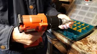Беспроводной гайковерт с бесщеточным мотором и большим крутящим моментом. На первой скорости (2000 об/мин) он может затягивать болты и гайки с усилием до 350 Нм, а на второй (2600 об/мин) — до 700 Нм. Благодаря наличию функции удара, инструмент «помогает» себе с помощью ударного воздействия (до 5000 уд/мин). Функции патрона у гайковерта Yato YT-82806 выполняет квадрат 1/2", позволяющий использовать все виды головок с соответствующим посадочным размером. В комплект поставки входят кейс, адаптер для бит, зарядное устройство и аккумуляторная батарея на 3 Ач (производитель допускается возможность использования других 18-вольтовых АКБ марки Yato емкостью от 2 Ач до 6 Ач).