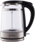 — Пластик со стеклом. Колба таких чайников выполнена из закалённого прозрачного стекла, а корпус из термостойкого пластика, который устойчив к нагреву и механическим повреждениям. При этом часть колбы (преимущественно верхняя) не закрыта пластиком. Такое решение делает прибор более эстетичным и безопасным: пластик снижает риск обжечься при случайном прикосновении, а стекло не впитывает запахи и легко очищается от накипи.