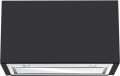 — С выдвижной панелью. Как следует из названия, такие вытяжки оснащены выдвижной панелью воздухозаборника. При работе панель открывается — таким образом увеличивается эффективная площадь всасывания. Сама вытяжка при этом обычно делается встраиваемой в шкаф или в стол (см. «Тип»). Но реализован этот тип может быть двумя способами. Открытые выдвижные в закрытом виде имеют переднюю панель, которая выделяется и видна под шкафом. Скрытые выдвижные модели в закрытом виде не видны, а механизм открывания устроен таким образом, что панель выдвигается слегка под углом.