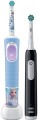 Что касается комплектов с неодинаковыми щетками, то они могут включать, к примеру, модели с разными типами насадок, или взрослую и детскую щетку.