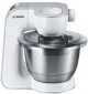Блендер. В данном случае представляет собой зауженную книзу чашу, на дне которой расположен лопастной нож. Такое приспособление подходит как для смешивания жидкостей в однородную массу (например, для приготовления коктейлей или жидкого теста), так и для измельчения некоторых твердых продуктов (например, фруктов и овощей) в однородное пюре. Блендер обычно устанавливается вместо основной чаши, однако есть устройства, позволяющие использовать две чаши одновременно.