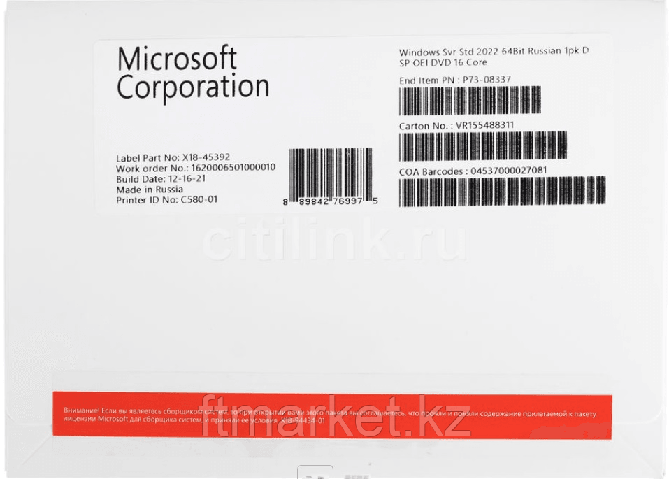Windows Server Standard 2022 64Bit Russian 1pk DSP OEI DVD 16 Core — это современная серверная операционная система, разработанная корпорацией Microsoft для обеспечения надежной, защищённой и высокопр еще→оизводительной ИТ-инфраструктуры. Решение предназначено для корпоративных клиентов и ИТ-подразделений, которым необходим стабильный контроль, безопасность и масштабируемость. Русская версия Windows Server 2022
