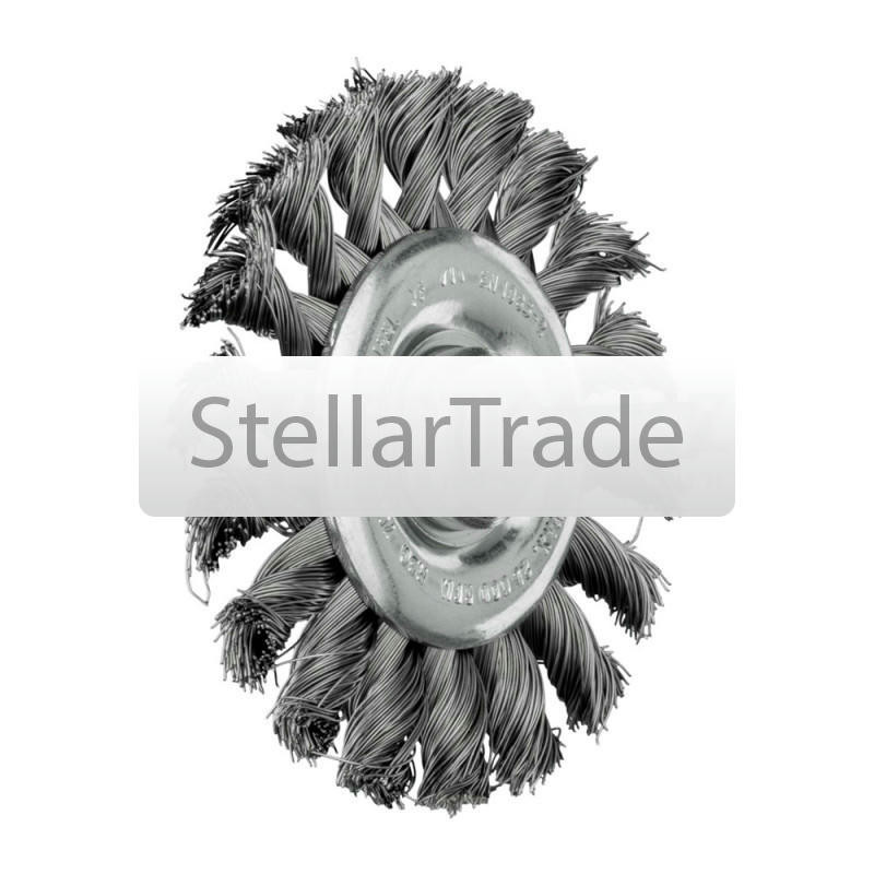 Дисковая щётка с хвостовиком, плетёная, стальная проволока. Для труднодоступных канавок и углублений, для очистки, удаления ржавчины и обработки сварных швов. Плетёная провол еще→ока позволяет работать агрессивней, чем обыкновенная. Рекомендуемый привод: прямая машина, привод с гибким валом, дрель. Рекомендуемая мощность минимум 500 Ватт.