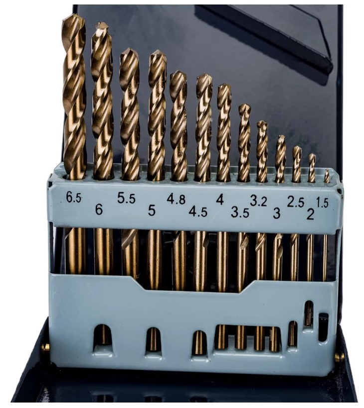 Описание: Набор спиральных сверл по металлу Thorvik TDBS13K5 предназначен для обработки чугуна, углеродистых и конструкционных сталей, нержавеющих и жаропрочных сплавов. Сверла изготовлены из быс еще→трорежущей инструментальной стали с содержанием кобальта 4,8 - 5,0%. Комплектация Сверла 1,5; 2,0; 2,5; 3,0; 3,5; 4,0; 4,5; 5,0; 5,5; 6,0; 6,5 мм; Железный кейс.