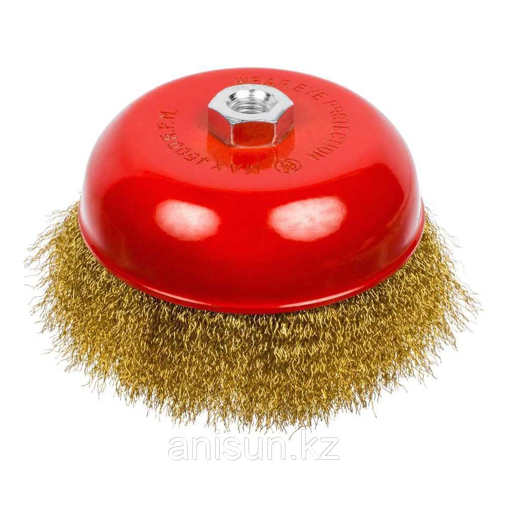 Щетка-крацовка чашечная для УШМ РемоКолор 75 мм 45-1-003 - служит оснасткой для угловых шлифмашин. Используется для эффективной зачистки различных поверхностей от старой краски, лакокрасочных покрытий еще→, эмали, ржавчины и др. Материал щетины - латунированная сталь. Резьба М14Материал проволоки латунированная стальФорма проволоки волнистаяТолщина проволоки 0.3 ммДиаметр 75 ммМаксимальная скорость 12500 об/мин