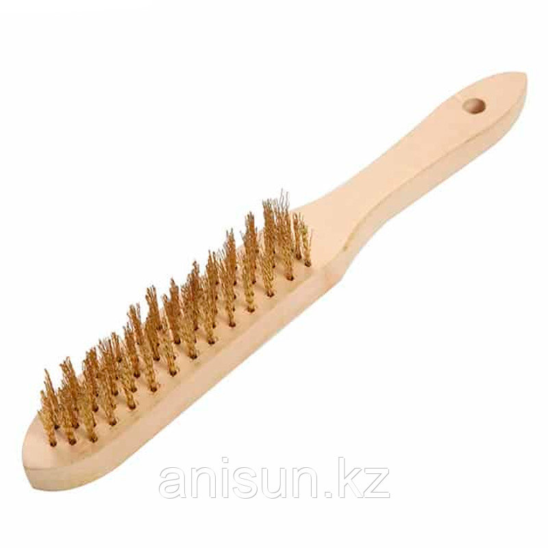 Щетка ручная проволочная TOLSEN 4-рядная латунир. витая проволока, деревянная рукоятка 32065 - предназначена для эффективной очистки металлических поверхностей от ржавчины, краски и других загрязнений.