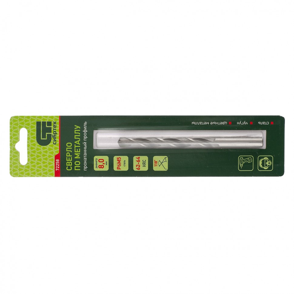 Описание: Сверло спиральное по металлу HSS Co в ПВХ упаковке, d5.2 мм