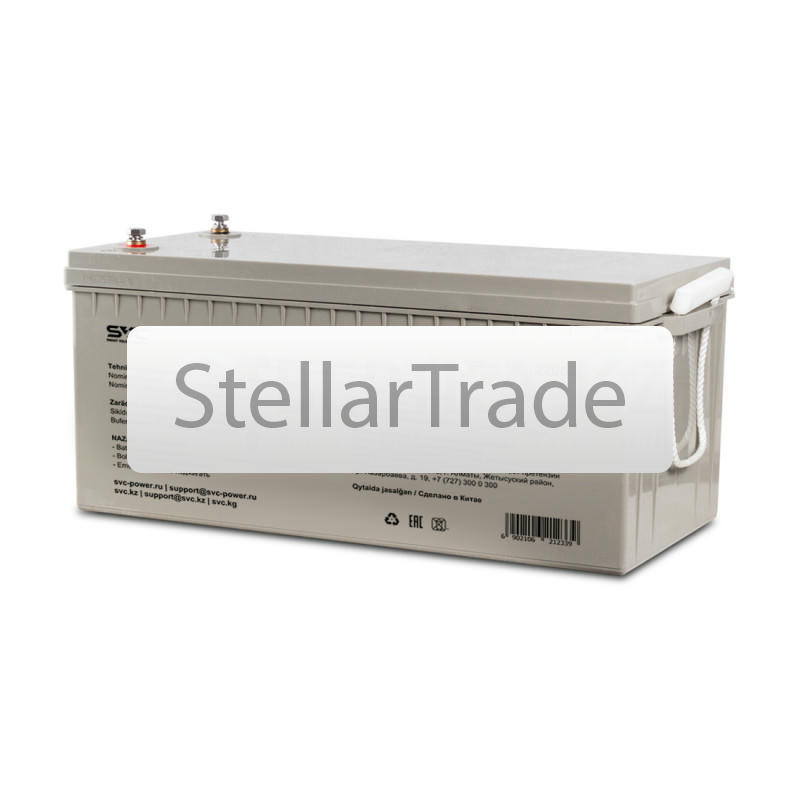 Гелевая батарея SVC 12В 200 Ач Аккумулятор созданный по технологии GEL, что дает одно неоспоримое преимущество перед AGM - батареи не бояться глубокого разряда и также хорошо функционирую еще→в буферном и циклическом режиме. Рекомендована для использования в системах автономного энергоснабжения, источниках бесперебойного питания и телекоммуникациях. Характеристики