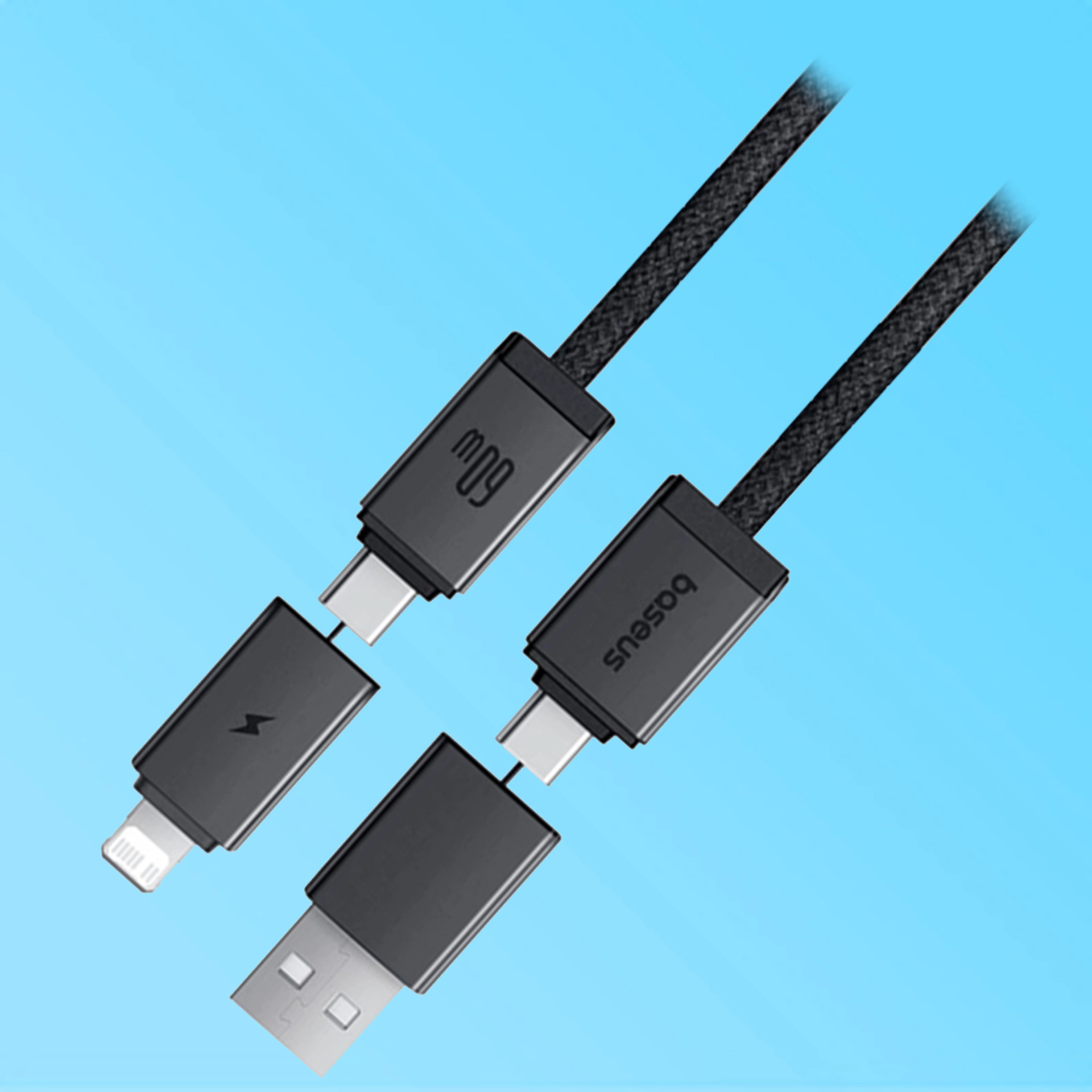 Baseus Versatile Series — это ультимативный кабель-трансформер «4-в-1», созданный для тех, кто ценит минимализм и функциональность. Благодаря продуманной системе переходников, один кабель заменяет еще→сразу четыре: USB-A to Type-C, USB-A to Lightning, Type-C to Type-C и Type-C to Lightning. Это идеальный спутник для путешествий и ежедневного использования в автомобиле или офисе.