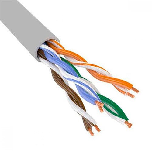 Оптовые поставки! Минимальная сумма заказа — 500 000 T Кабель для структурированных кабельных систем и сетей широкополосного доступа внутренней прокладки, симметричной парной скрутки, жила — медная од еще→нопроволочная, изоляция — сплошной полиэтилен, оболочка — серый ПВХ, без экрана Число пар 4 Диаметр жилы 0,52 мм Диаметр кабеля 6,35 мм Максимальная частота 100 Мгц Максимальная скорость 1000 Мбит/с Бухта 305 м