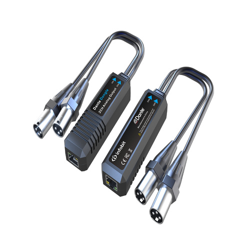 Компактный и лёгкий Dante-передатчик, преобразующий аналоговый сигнал с XLR в цифровой Dante-поток, питается по PoE.