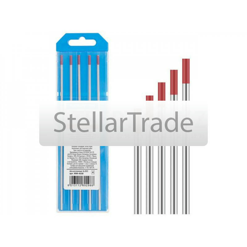Цвет: красный, Диаметр: 3,2 мм, Длина: 175 мм, Масса одного электрода: 25,3 г, Количество: 5 шт, Электрод с содержанием оксида тория Th еще→O2 (массовое содержание от 1,7 до 2,2 %). Наиболее распространенные электроды, имеют существенные преимущества перед чисто вольфрамовыми электродами при сварке на постоянном токе. Обладает легким поджигом дуги,