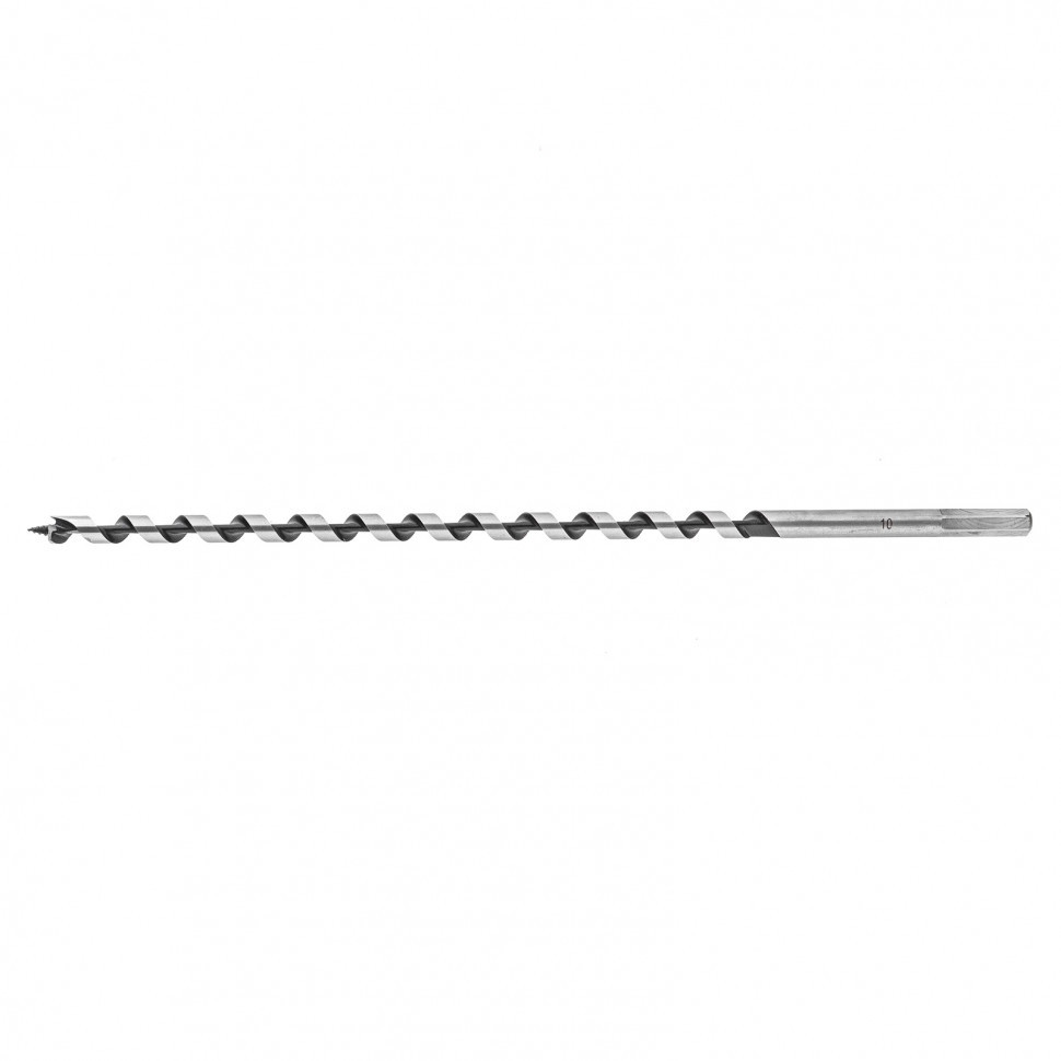 Сверло имеет центрирующее острие со спиральной нарезкой, уменьшающей осевую нагрузку, и острую подрезную кромку, которая позволяет с высокой точностью просверлить отверстие с гладкими поверхностями, п еще→редотвращая смещение сверла и исключая необходимость в предварительном засверливании.Изготовлено из углеродистой стали с твердостью режущей части 40 HRС.Шестигранный хвостовик обеспечивает надежное удержание сверла в патроне.