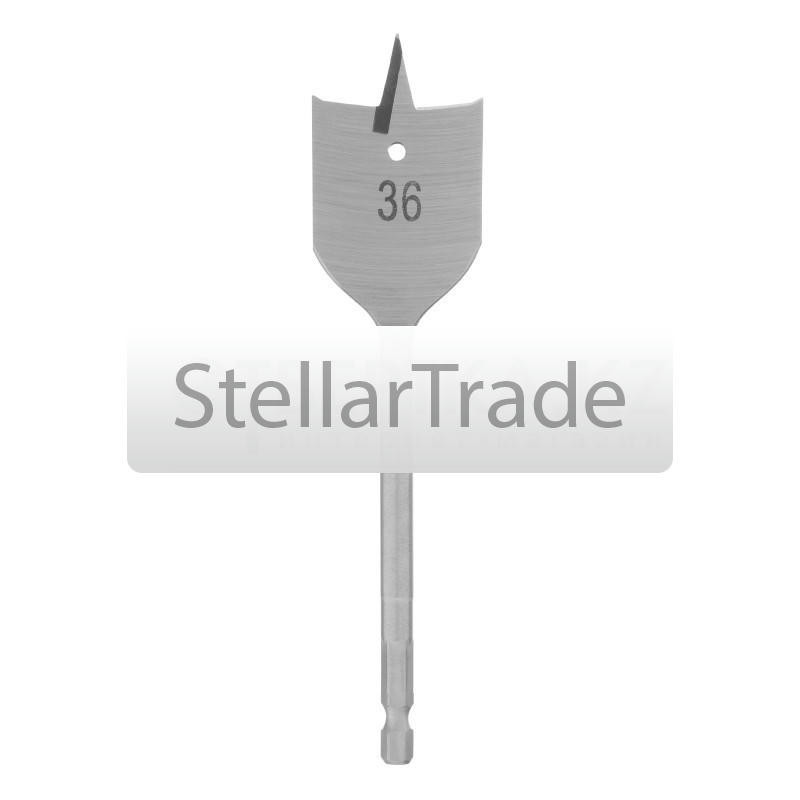 Перовое сверло по дереву Matrix 70429 диаметром 36 мм, с 6-гранным хвостовиком, имеет рабочую часть в виде «лопатки» с режущими кромками по бокам, поэтому эффективно для сверления глубоких сквозных и еще→глухих отверстий. Оснастка устанавливается на ручную механическую или электрическую дрель, сверлильный станок, с ее помощью можно сверлить древесину любых пород. Преимущества