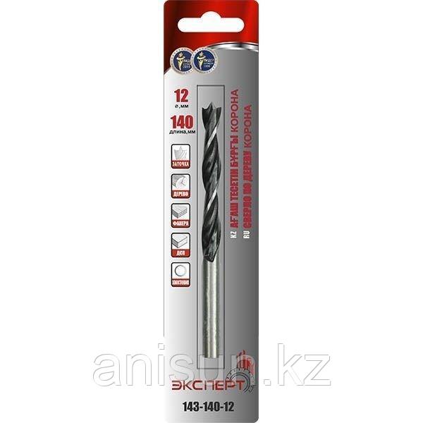 Сверло ЭКСПЕРТ КОРОНА по дереву спир. с М-образной заточкой, парооксид. 130*12мм 143-140-12