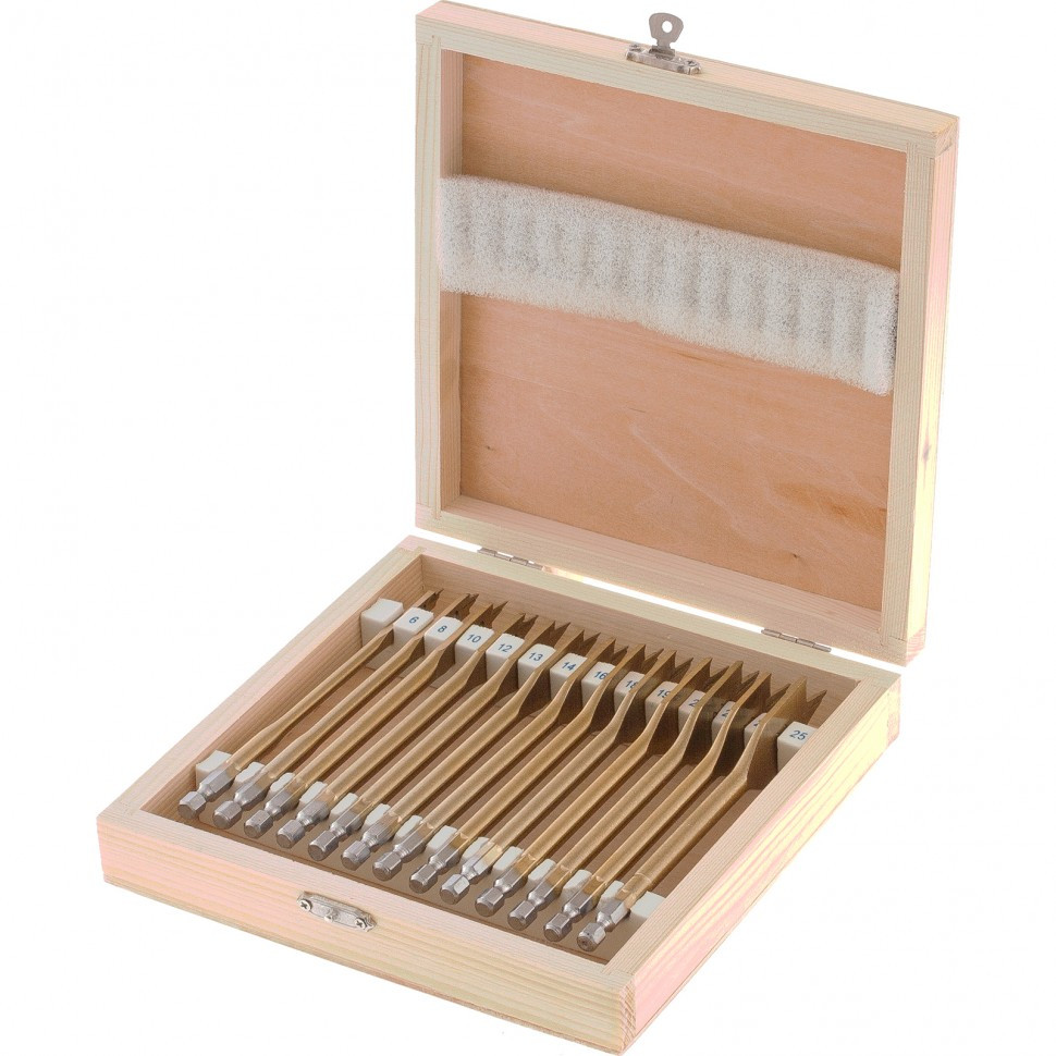 Предназначены для сверления отверстий в древесине. Перовые сверла изготовлены из углеродистой стали.Твердость режущих кромок 45–54 HRC.Хвостовики имеют шестигранную форму, что предотвращает поворот св еще→ерла.Особенности набора:Наличие подрезных кромок, которые позволяют получать отверстия с улучшенным качеством поверхности. Сверла имеют нитрид-титановое покрытие, что повышает износостойкость и долговечность инструмента.Удобный деревянный кейс для хранения. Комплектация: Перовые сверла 13 шт: 6-8-10-12-13-14-16-18-19-20-22-24-25 мм.Деревянный кейс.