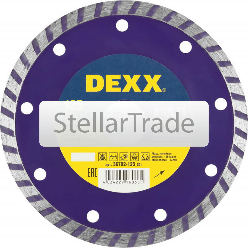 Алмазные отрезные круги DEXX - высокое качество по доступной цене. Применяются на УШМ для резки бордюрного камня, тротуарной плитки, облицовочного кирпича. Преимущества DEXX 36702-125_z01 еще→: Сегментированная форма режущей кромки для точных пропилов без сколов Оптимально подобранные компоненты металлической связки гарантируют продолжительный рабочий ресурс диска при