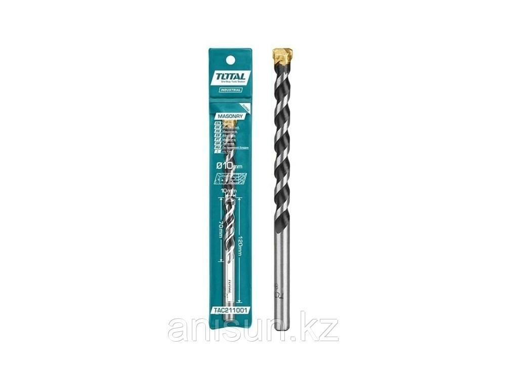 Сверло по бетону TOTAL 10*120 цилиндрический хвостовик TAC211001 Сверло TOTAL по бетону диаметром 10 мм и длиной 120 мм идеально подходит для сверления отверстий в бетонных, кирпичных и каменных стена еще→х, что делает его незаменимым инструментом в строительстве и ремонте.При работе со сверлом по бетону необходимо использовать защитные очки и перчатки для предотвращения травм. Обязательно следуйте инструкции по эксплуатации и технике безопасности.