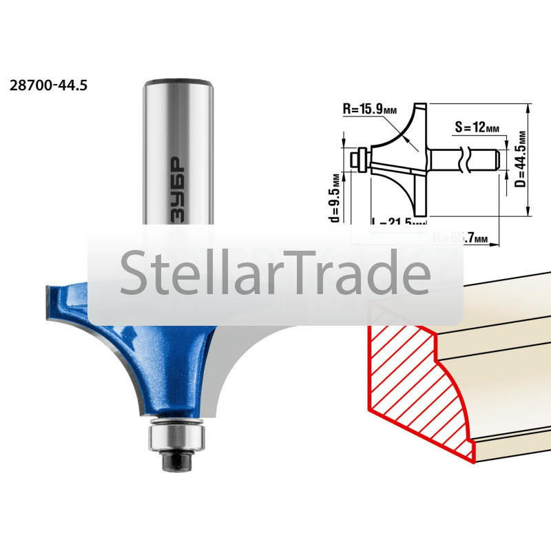 Фреза отлично подходит для скругления кромок при обработке столешниц, полок, шкафов и прочих работ с разнообразными видами древесины. Преимущества ЗУБР 28700-44.5: Заточка пр еще→оизводится только на самых современных станках с ЧПУ. Упорный подшипник позволяет обрабатывать криволинейные кромки без дополнительных приспособлений. Использование ЗУБР 28700-44.5: