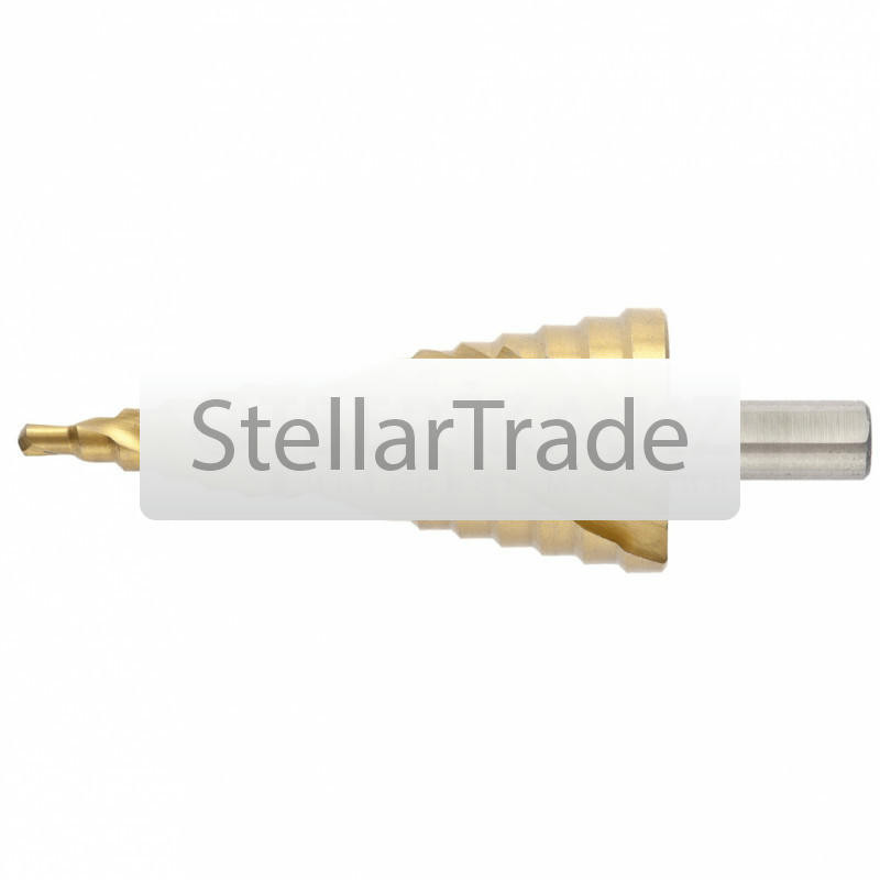 Ступенчатое сверло MATRIX 72359 из стали HSS, со спиральным профилем и трехгранным хвостовиком, позволяет получать отверстия диаметром 4-6-8-10-12-14-16-18-20-22-24-26-28-30-32 мм в материалах толщино еще→й до 5 мм: стали, цветных металлах, нержавейке и пластике. Благодаря плавному ступенчатому переходу и возможности сразу снять фаску отверстие получается аккуратным и имеет ровные края. Преимущества