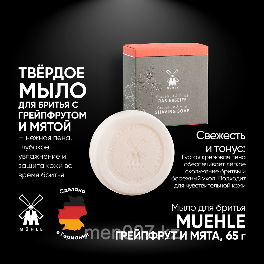 Твердое мыло для бритья считается классикой среди средств по уходу за бритьем. Они ценятся за свои свойства: круговые движения помазка создают густую кремообразную пену, которая остается стабильной на еще→протяжении всего бритья. При намыливании волоски бороды пропитываются и таким образом подготавливаются к гладкому и гладкому бритью. Все мыла MÜHLE не содержат ингредиентов