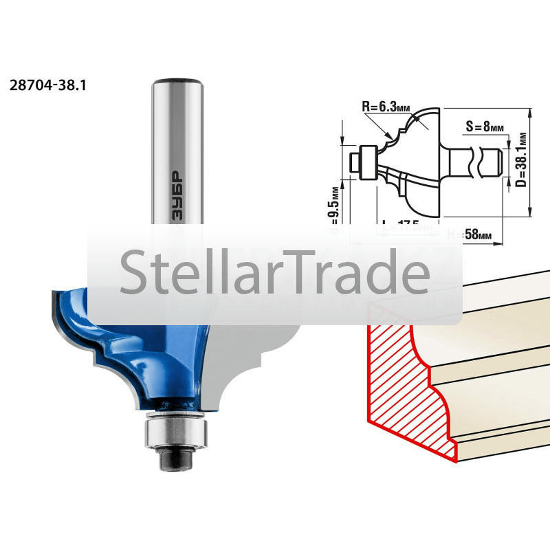 Фреза отлично подходит для скругления кромок при обработке столешниц, полок, шкафов и прочих работ с разнообразными видами древесины. Преимущества ЗУБР 28704-38.1: Заточка пр еще→оизводится только на самых современных станках с ЧПУ. Упорный подшипник позволяет обрабатывать криволинейные кромки без дополнительных приспособлений. Использование ЗУБР 28704-38.1: