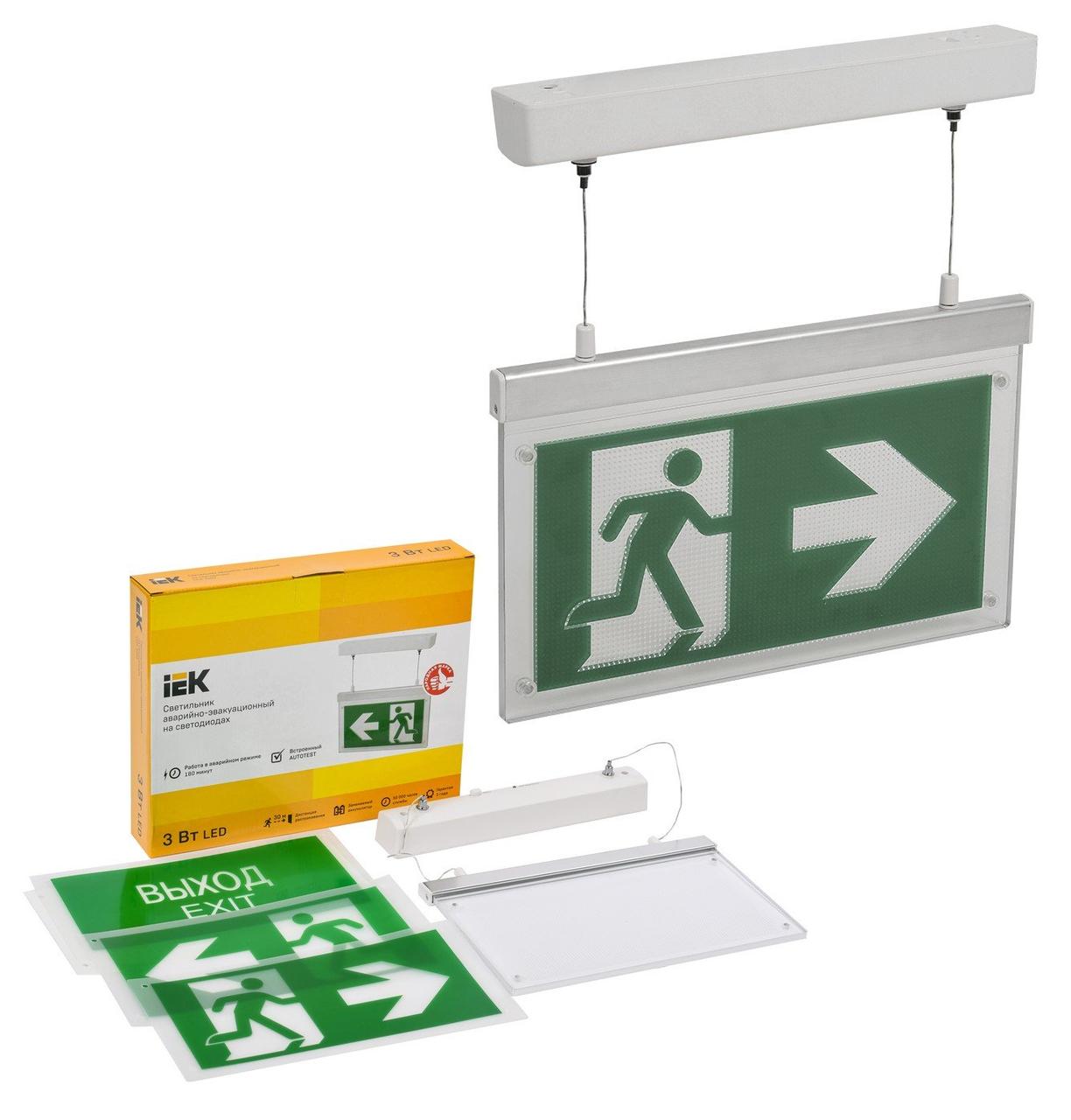 Назначение изделия Предназначен для указания путей эвакуации, мест выхода, направления движения и прочих информационных целей в общественных и административных помещениях с низким уровнем содержания п еще→ыли и влаги. Знаки сменные. Встраивается в потолки типа Армстронг. Двусторонний эвакуационный светильник с возможностью смены знака. Три сменных знака в комплекте: выход, выход