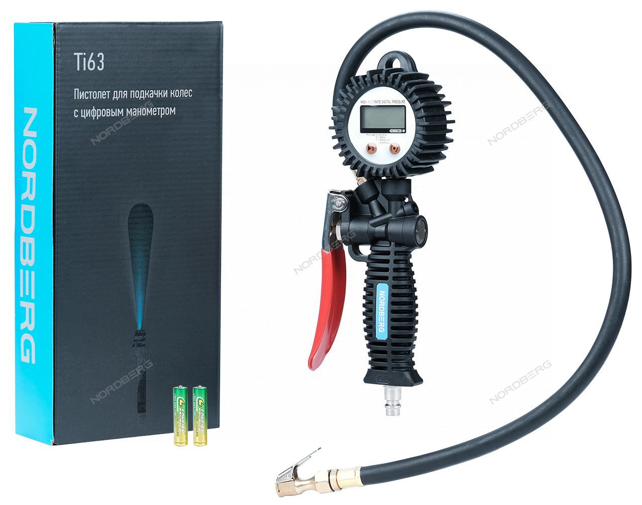 nПистолет для подкачки шин, для легковых авто NORDBERG Ti61 Теперь с вращающимся шлангомДлина шланга увеличена до 70 смЭргономичный корпус с широкой управляемой рукояткойБольшой манометр со шкалой до еще→8,5 Бар обеспечивает высокую точность измеренийУправление накачка/спуск производится одной рукояткойОснащен быстросъемным переходником для подключения сжатого воздухаn
