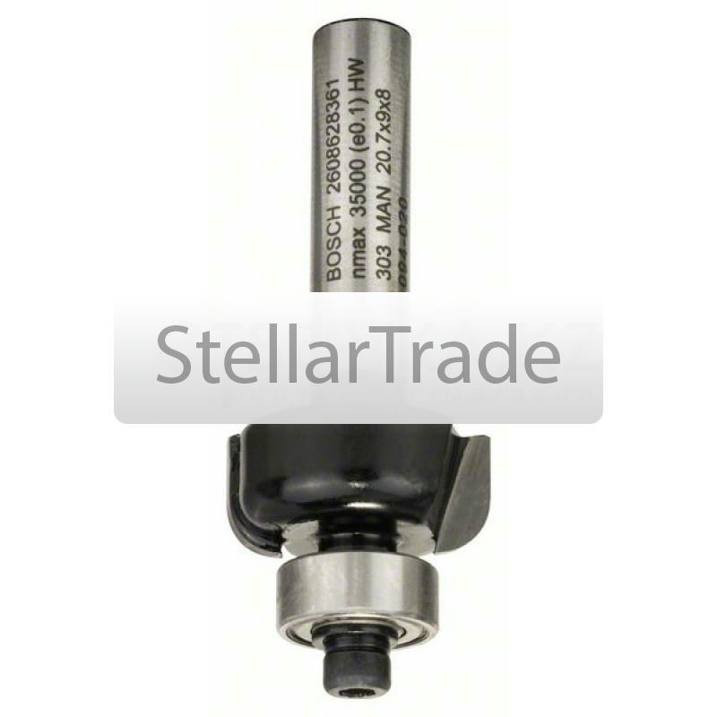 Профильная фреза Bosch E 8 mm, R1 4 mm, D 20,7 mm, L 9 mm, G 53 mm; Для профилирования кромок и использования в копировальных фрезерных станках; Галтельная фреза Bosch с шарикоподшипником для простого еще→ведения прямо на заготовке без шаблона Для изготовления профилирования кромок, шарнирных соединений с каннелюрами, декоративных пазов, фрезерования канавок, структурирования поверхностей, а