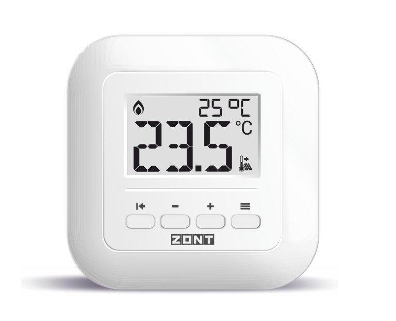 Оптовые поставки! Минимальная сумма заказа — 500 000 T Назначение изделия Комнатный термостат ZONT МЛ-332 предназначен для контроля температуры воздуха в отдельной зоне обогрева с отображением текущег еще→о и целевого значения температуры на дисплее. Ввод целевого значения температуры осуществляется вручную через термостат или дистанционно из сервиса ZONT. Для измерения температуры