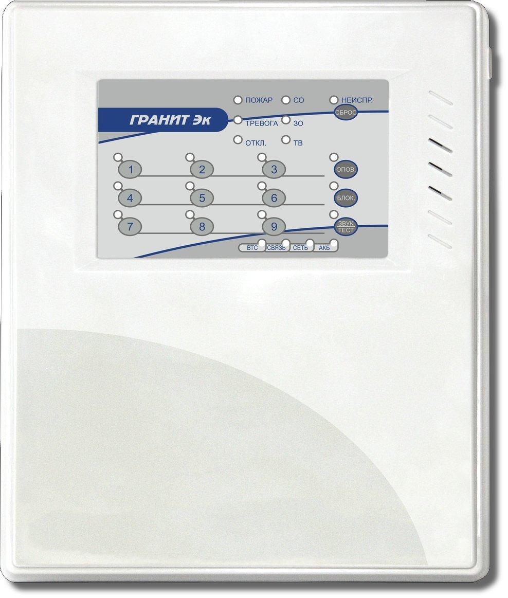 Назначение изделия Прибор «Гранит-9 Эк» выполняет функции охранно-пожарной сигнализации, следит за состояние окружающей среды и управляет оборудованием. Прибор может работать как контроллер доступа,о еще→граничивая доступ в помещение с помощью электромагнитного замка. В качества ключа доступа используются электронные ключиTouchMemory, проксимити карты, брелоки, цифровые пароли.