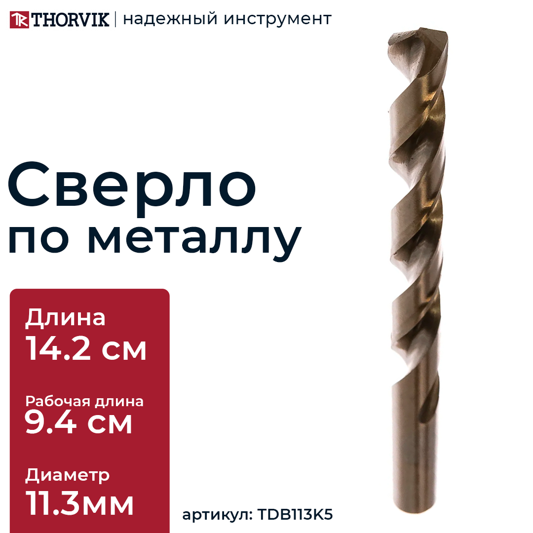 Описание: Сверло спиральное по металлу HSS Co в ПВХ упаковке, d11.3 мм