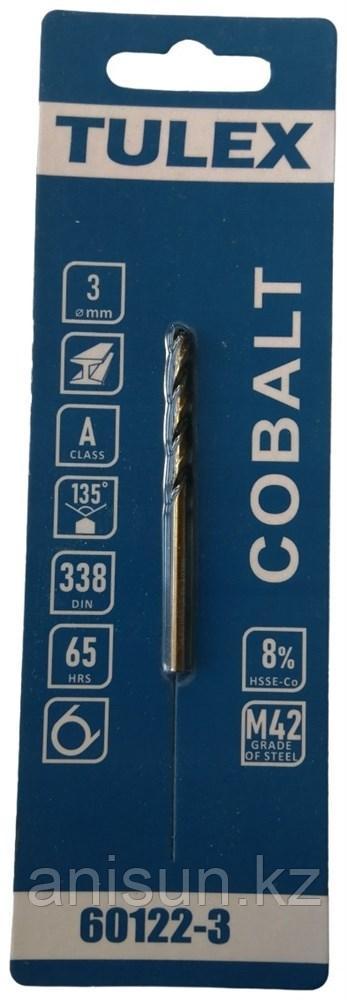 Сверло TULEX по металлу КОБАЛЬТ HSSE-Co(8%), сталь М42, DIN338, 65-HRS, 3мм (1шт/уп) 60122-3