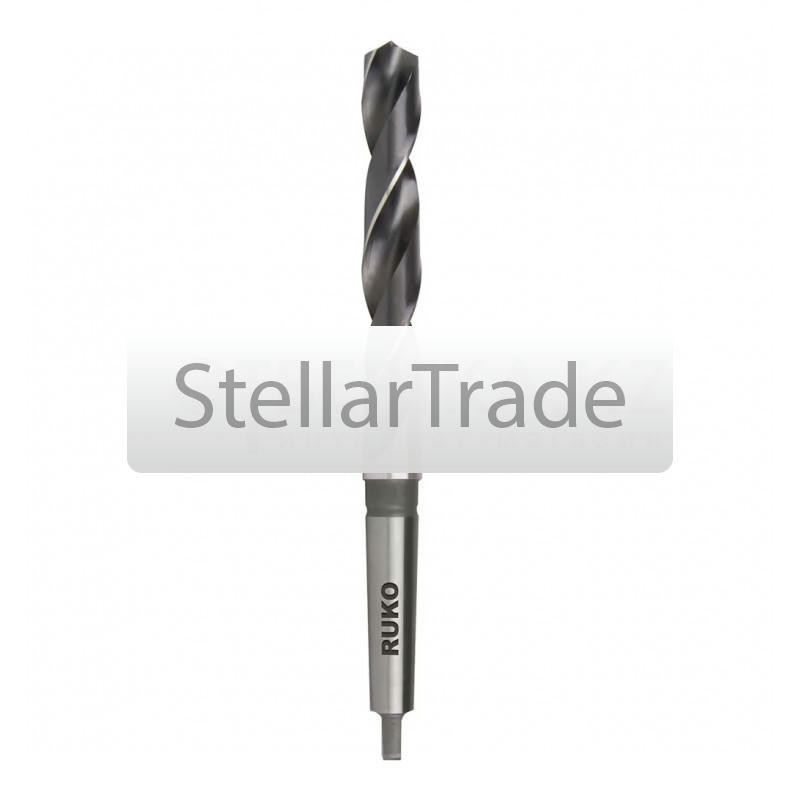Сверло Ø34.5 мм с конусным хвостовиком (34.5х339/190 мм) DIN345 RUKO 204345 предназначено для получения сквозных и глухих отверстий в изделиях из различных материалов. Изготовлено из высо еще→кокачественной быстрорежущей стали HSS-G (M2) твердостью 63-65Hrc, что гарантирует прочность и износостойкость. Подходит для обработки заготовок на станках, выполненных из легированной стали, чугуна,