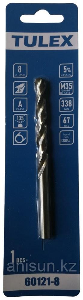 Сверло TULEX по металлу КОБАЛЬТ HSSE-Co(5%), сталь М35, DIN338, 67-HRS, 8мм (1шт/уп) 60121-8