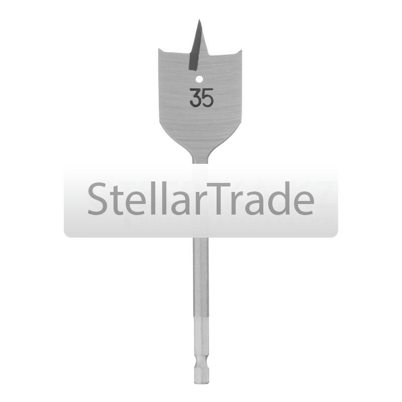 Перовое сверло по дереву Matrix 70427 диаметром 35 мм, с 6-гранным хвостовиком, имеет рабочую часть в виде «лопатки» с режущими кромками по бокам, поэтому эффективно для сверления глубоких сквозных и еще→глухих отверстий. Оснастка устанавливается на ручную механическую или электрическую дрель, сверлильный станок, с ее помощью можно сверлить древесину любых пород. Преимущества