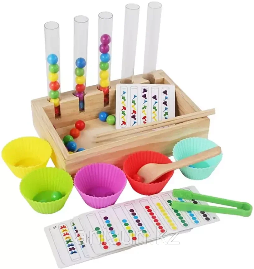 Логическая настольная игра Радужные бусины станет интересным и полезным развлечением для детей от 3-х лет. Детская игра развивает у детей мелкую моторику рук, логическое мышление, внимательность, точн еще→ость и координацию движений, учит различать и сравнивать цвета между собой, тренируя цветовосприятие. Пластиковые колбы устанавливаются в специальные выемки в деревянном