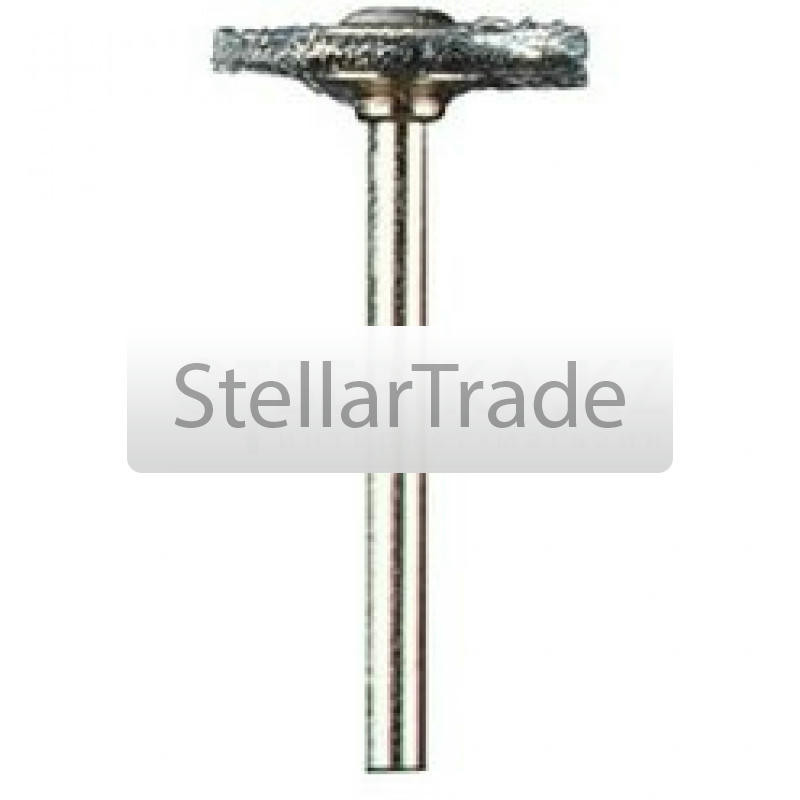 Универсальная щетка для удаления ржавчины и следов коррозии, полировки металлических поверхностей, удаления заусенцев, стыковых швов между поверхностями разного типа или для очистки электрических комп еще→онентов. Характеристики: Диаметр хвостовика 3,2 мм Рабочий диаметр 19,0 мм Длина насадки 44,0 мм Макс. скорость 15.000 об./мин. Количество 2